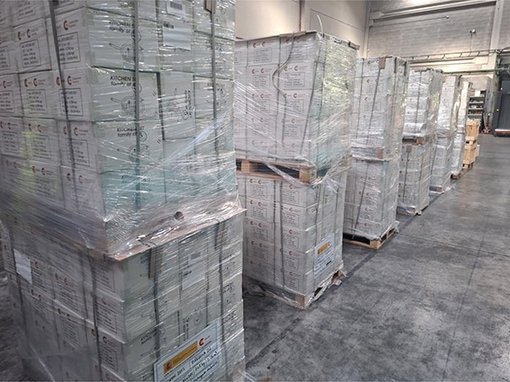 En este material se enviarán, por ejemplo, 24 palets con 2184 kits de cocina familiares, que podrán beneficiar a unas 11.000 personas. Además, hay 1.600 kits de herramientas que se estima que podrán ayudar a 8.000 personas aproximadamente, así como 253 pares de botas. El coste total de este material es de 144.000 euros.
