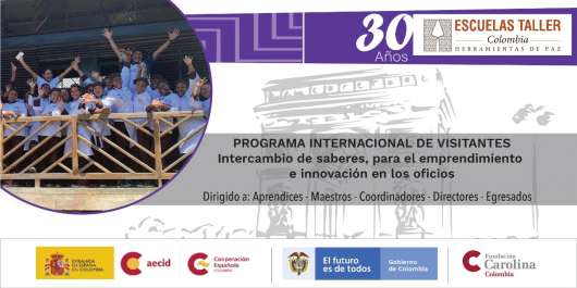 El Ministerio de Cultura de Colombia, la Cooperación Española en Colombia - AECID y la Fundación Carolina Colombia, se unen para lanzar la Primera Edición del Programa Internacional de Visitantes Escuelas Taller de Colombia: Herramientas de Paz, con el objetivo de generar un intercambio de experiencias entre las Escuelas Taller de Colombia, de España e instituciones españolas. A través de esta iniciativa, se busca promover el diálogo de saberes y el emprendimiento sostenible e innovador en los oficios.